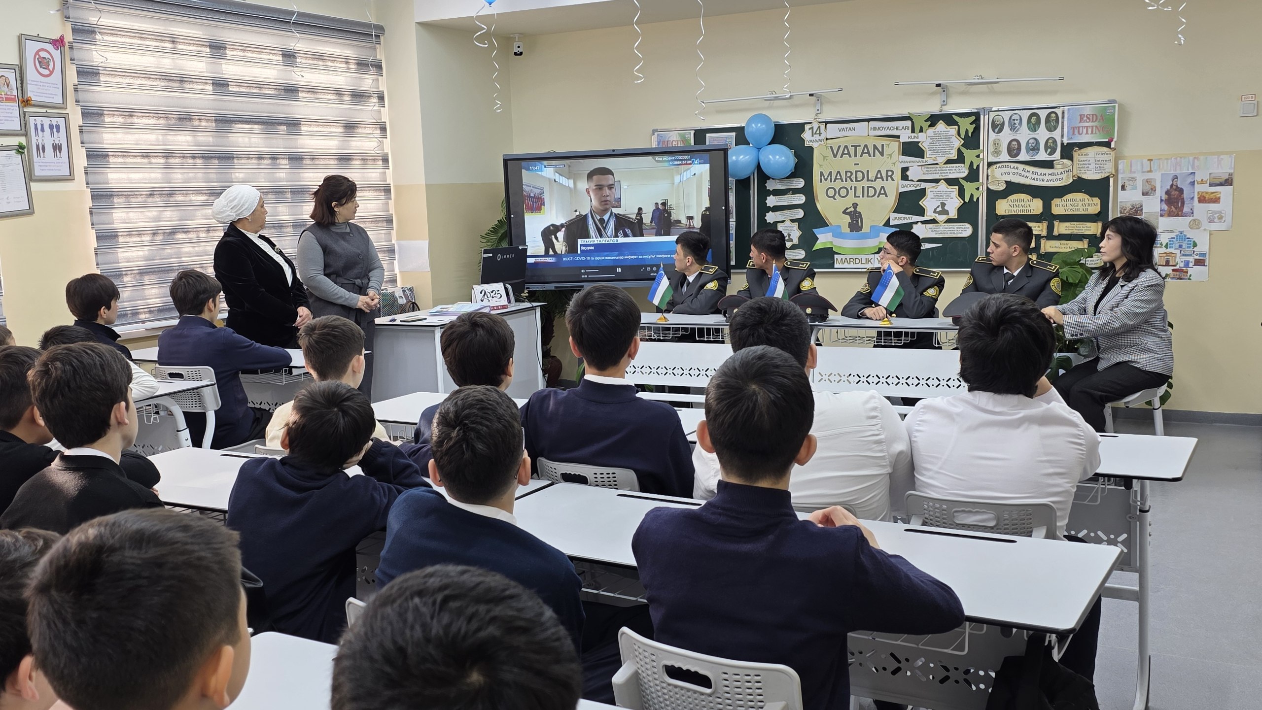 8 A - sinf o'quvchilari bilan 1-sonli akademik litsey talabalari xamroqligida 14 yanvar Vatan himoyachilari kuni munosabati bilan "Vatan himoyasi muqaddas burch" mavzusida noan’anaviy tarzda dars tashkil qilindi